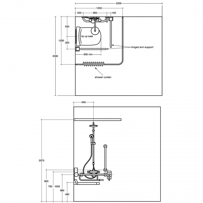 • Contour 21 hinged support rail 80 x 35mm diameter, Doc M Compliant