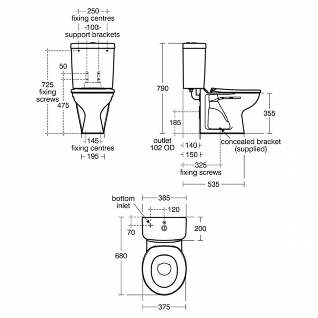 • Includes 6 litre push button valve bottom supply and internal overflow, secure cover fastener