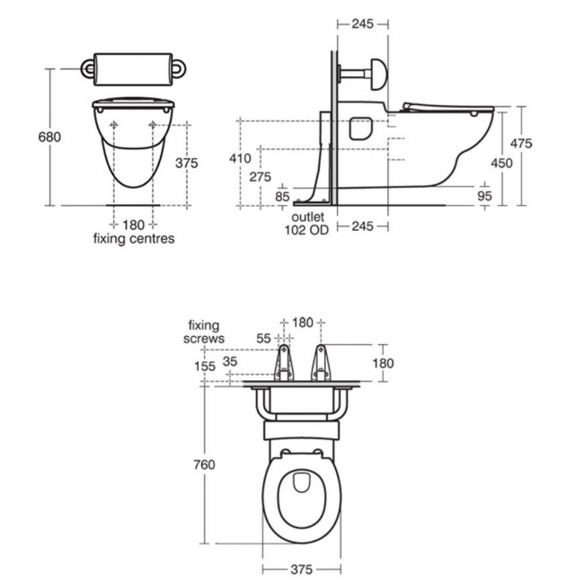 Ideal Standard Prosys Mechanical Wall Hung Toilet Frame with Concealed Cistern 820mm H x 400mm W