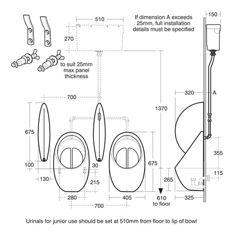 Armitage Shanks Concealed Flushpipes for 2 Bowl Urinal