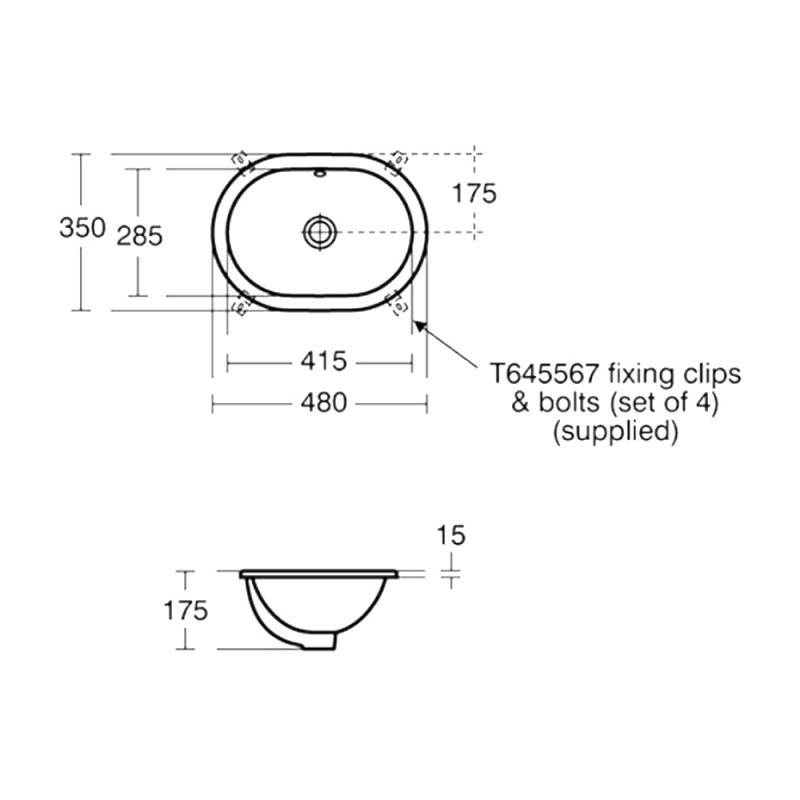 Armitage Shanks Marlow 21 Oval Under Countertop Basin with Overflow 480mm Wide - 0 Tap Hole | Product Image Armitage Shanks Marlow 21 Oval Under Countertop Basin with Overflow 480mm Wide - 0 Tap Hole