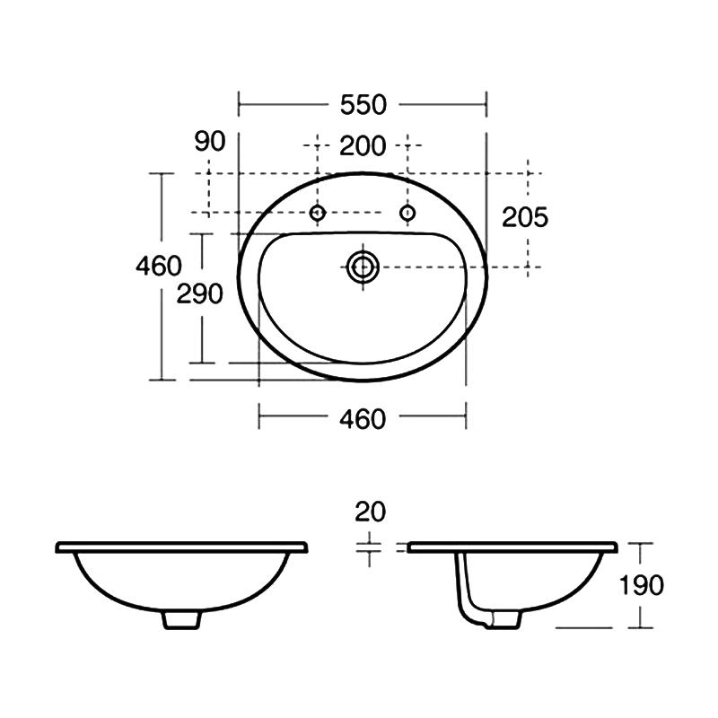 Armitage Shanks Orbit 21 Countertop Basin with Overflow 550mm Wide - 1 Tap Hole | Thumbnail Image Armitage Shanks Orbit 21 Countertop Basin with Overflow 550mm Wide - 1 Tap Hole