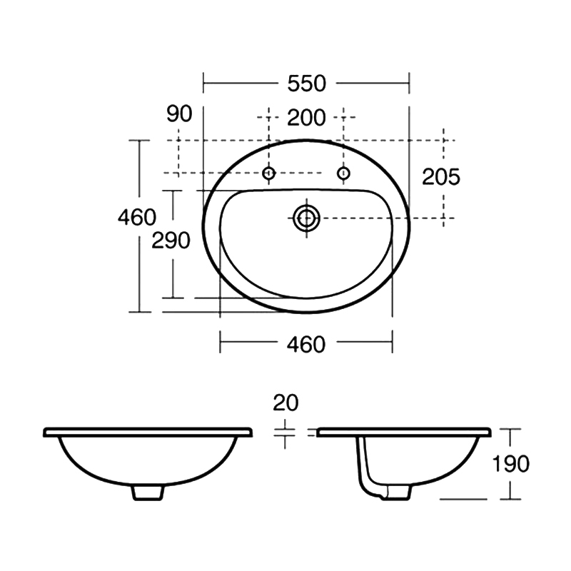 Armitage Shanks Orbit 21 Countertop Basin without Overflow 550mm Wide - 2 Tap Hole | Product Image Armitage Shanks Orbit 21 Countertop Basin without Overflow 550mm Wide - 2 Tap Hole