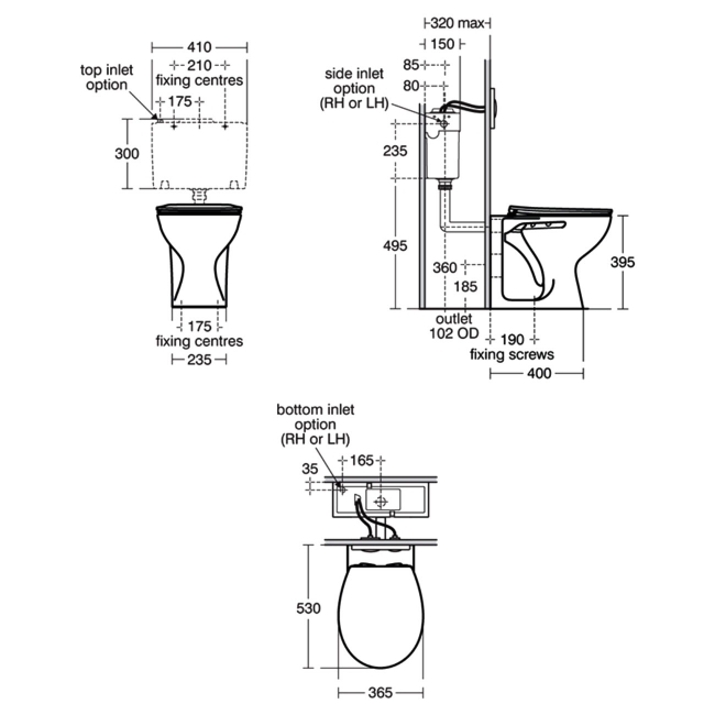 • Supplied complete with Standard closing seat & Cover with plastic hinges