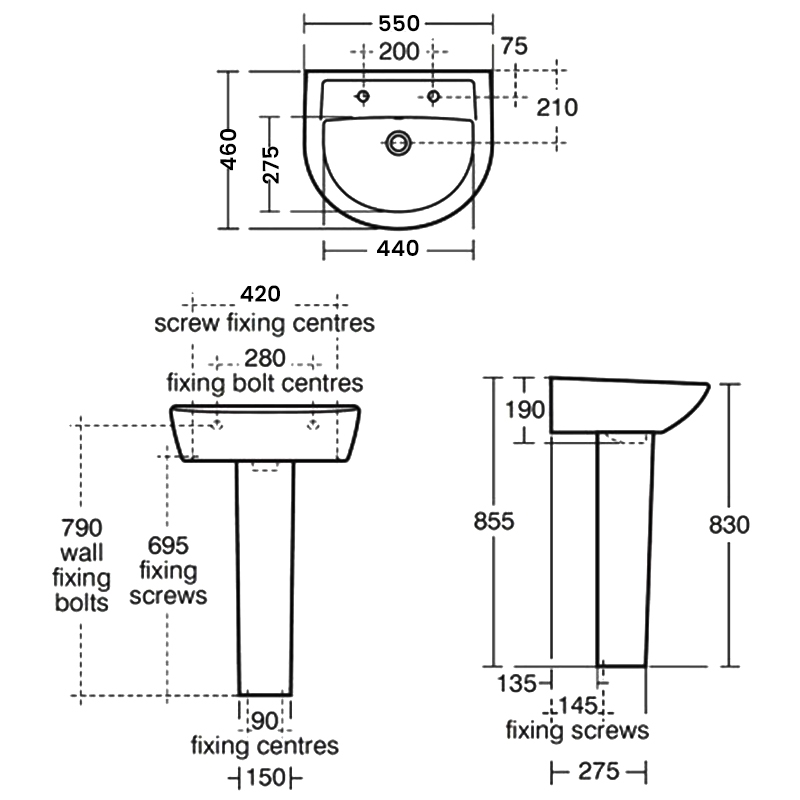 - Basin includes two tap hole - suitable for a standard pair of basin taps or basin mixer taps