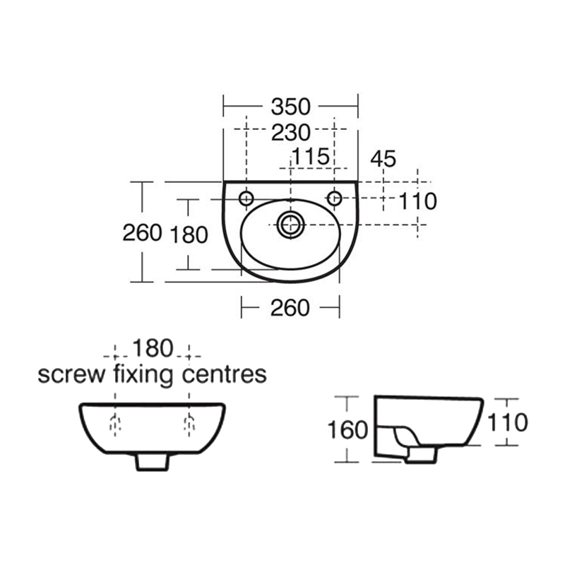 Armitage Shanks Sandringham 21 Wall Hung Handrinse Basin No Overflow 350mm Wide - 2 Tap Hole | Thumbnail Image Armitage Shanks Sandringham 21 Wall Hung Handrinse Basin No Overflow 350mm Wide - 2 Tap Hole