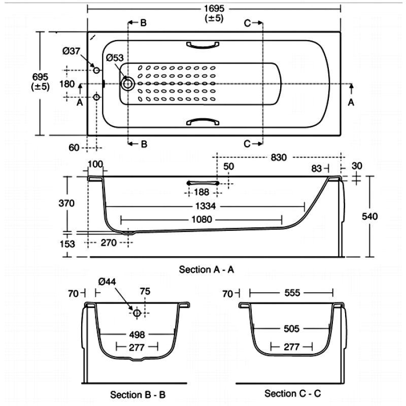 The Armitage Shanks Sandringham 21 Bath measures 1700mm x 700mm and includes two tap holes, integrated handgrips, and includes the leg set. Its tread pattern has been thoughtfully designed to help reduce the risk of slipping under normal use. While this offers an added sense of reassurance, users should still take care when entering or exiting the bath. With its durable construction and practical design, this bath suits both domestic and commercial settings. A bath waste, taps and bath panel can be bought separately to complete the look.