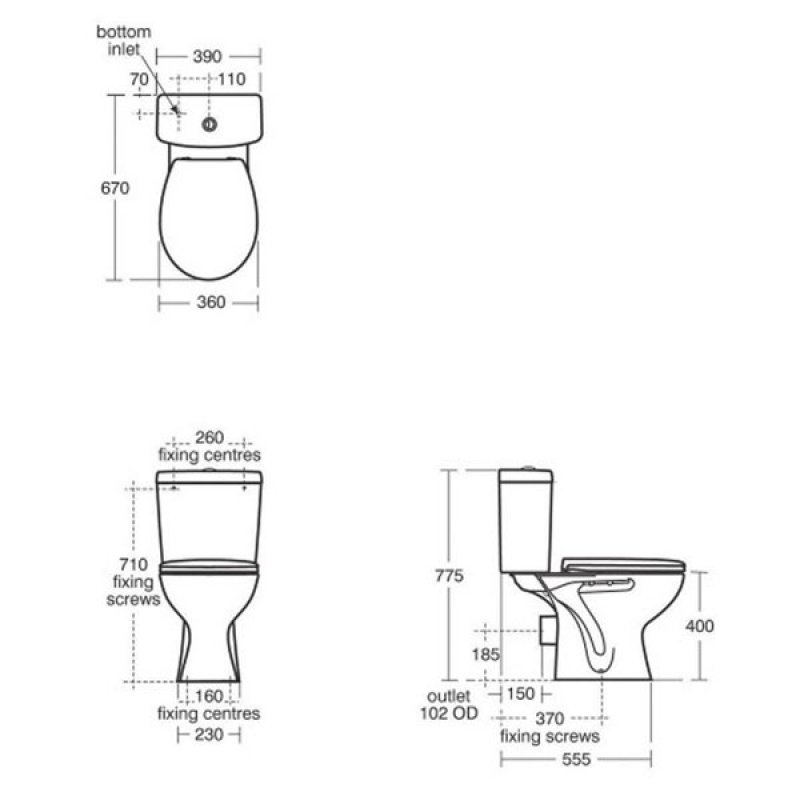 Supplied complete with Standard closing seat & Cover with plastic hinges