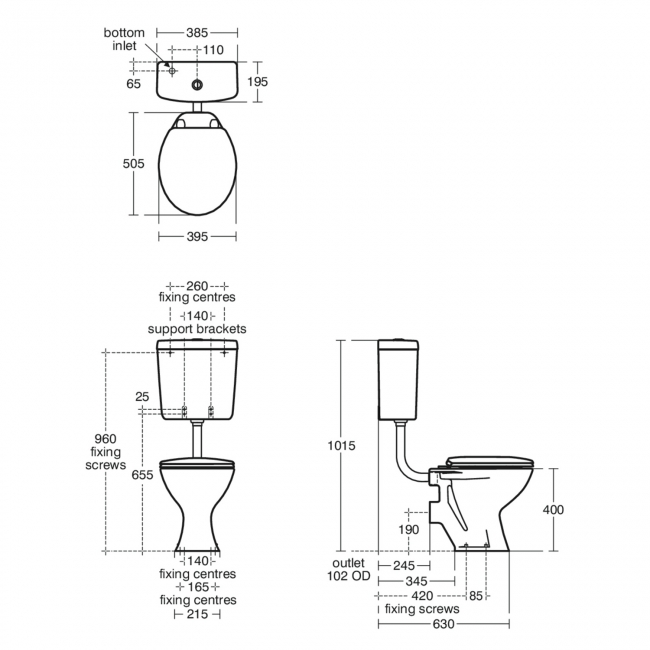 • The cistern is supplied c/w the internal fittings and Flushpipe