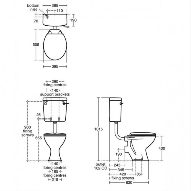 • The cistern is supplied c/w the internal fittings and Flushpipe
