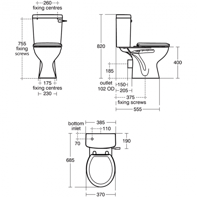 Lightweight seat and cover produced from high impact plastic designed for durability and economy, Perfect match for close coupled, back-to-wall convenient to install and use.