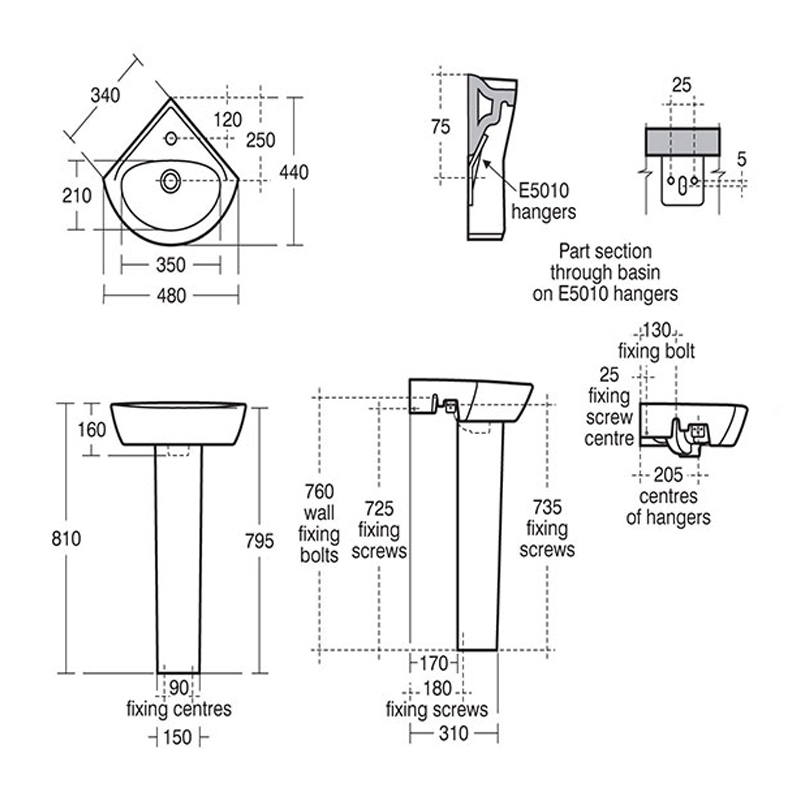 • Includes full length pedestal to conceal the pipe work