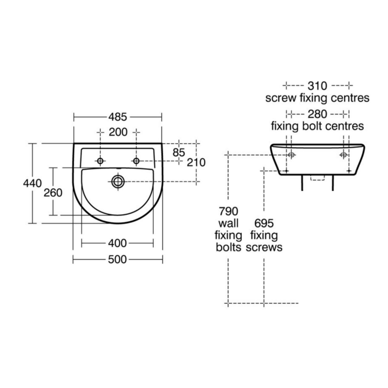 - Basin includes two tap hole - suitable for a standard pair of basin taps or basin mixer taps