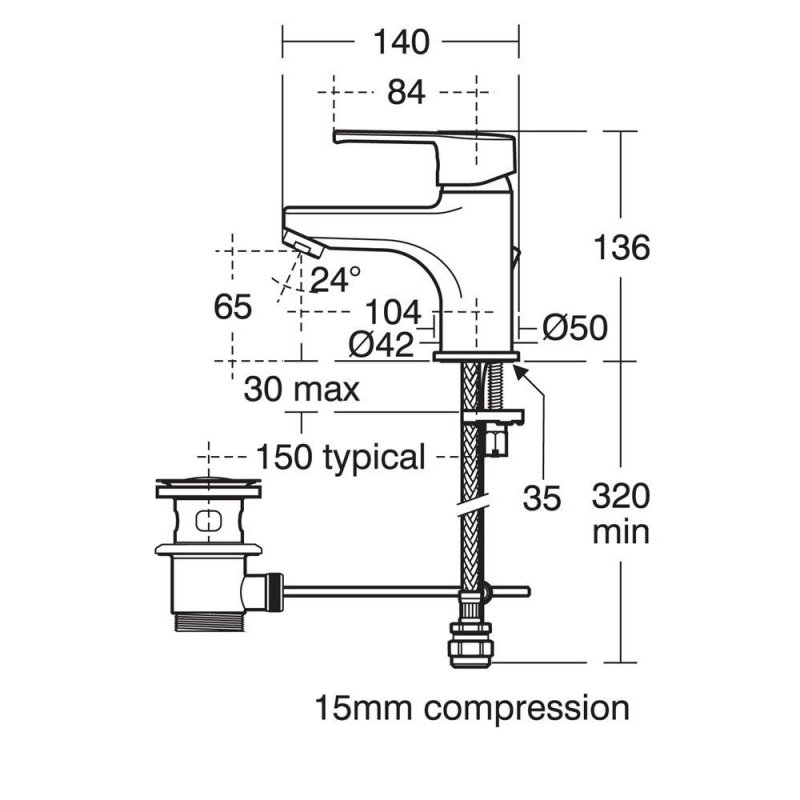 Armitage Shanks Sandringham SL 21 Basin Mixer Tap with Pop Up Waste - Chrome | Thumbnail Image Armitage Shanks Sandringham SL 21 Basin Mixer Tap with Pop Up Waste - Chrome