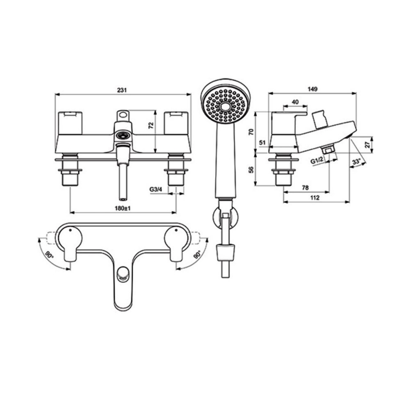 Armitage Shanks Sandringham SL 21 Bath Shower Mixer Tap - Chrome | Thumbnail Image Armitage Shanks Sandringham SL 21 Bath Shower Mixer Tap - Chrome