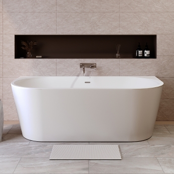 A back-to-wall bath is a fairly recent concept in bathroom design, whereby the bathtub is designed specifically to be positioned against 1 or more walls whilst leaving the remaining sides exposed. The back-to-wall bath type is often utilised in premium baths that try to emulate the style of a freestanding bath without being fully freestanding - a D-shaped or bow-fronted tub, for instance. In other cases, a back-to-wall bath might take the shape of a typical rectangular bath, but with a design-led difference such as a curved front that cannot easily be inset.