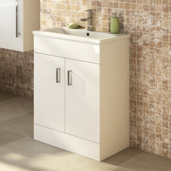 Nuie Mayford Floor Standing 1-Door Vanity Unit with Basin 420mm Wide - Gloss White