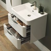 Cloakroom vanity units are specifically designed for small bathrooms and downstairs toilets where space is typically quite limited. Though compact, they still feature a fully functional basin and enough storage to keep the area tidy and free of any clutter.