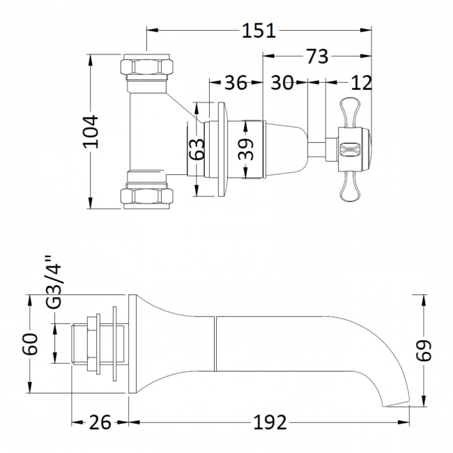 Bayswater Crosshead Dome 3-Hole Wall Mounted Bath Filler Tap White/Chrome Bayswater Crosshead Dome 3-Hole Wall Mounted Bath Filler Tap White/Chrome