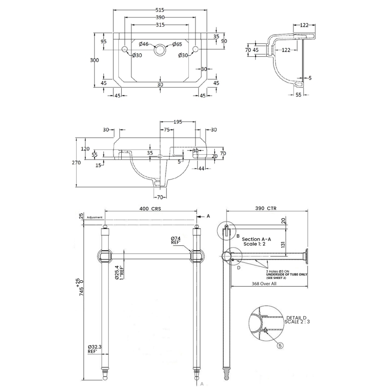 • 2 pre-drilled tap hole suitable for a pair of basin taps
