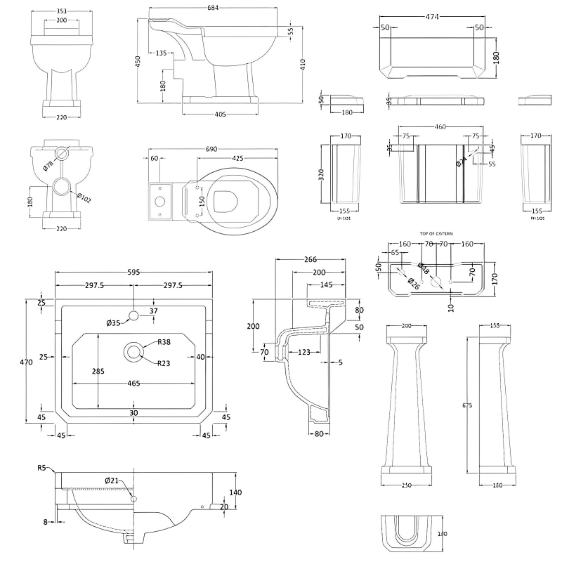 Bathroom Suite IncludesBasin, Full Pedestal, Toilet Pan, Cistern