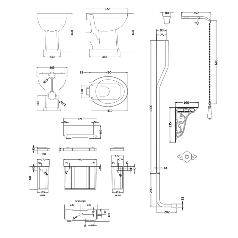 • Supplied as an easy-to-order pack consisting of high level toilet pan, flush pipe kit and high level cistern with ornate brackets