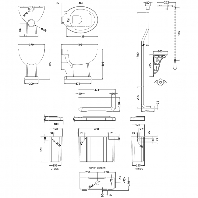 • Pull chain-operated cistern offers traditional design and modern manufacturing techniques