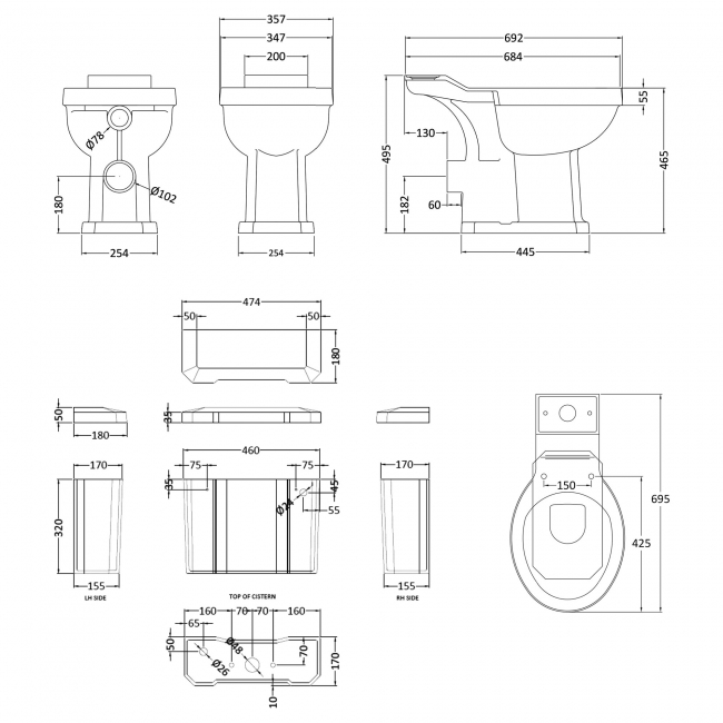 • Lever-operated single flush cistern (6 litres) offers traditional design