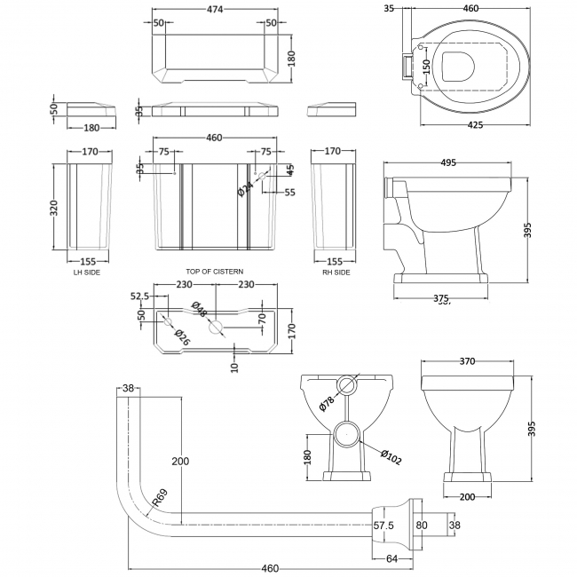 • Lever-operated single flush cistern (6 litres) offers traditional design