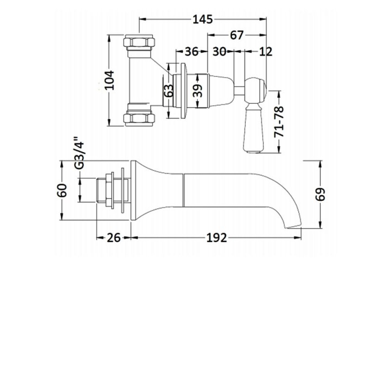 Bayswater Lever Dome 3-Hole Wall Mounted Bath Filler Tap White/Chrome | Product Image