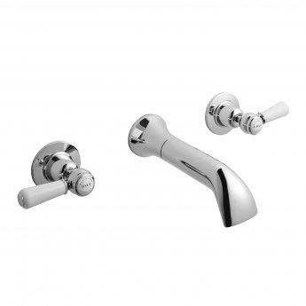 Bayswater Lever Dome 3-Hole Wall Mounted Bath Filler Tap White/Chrome