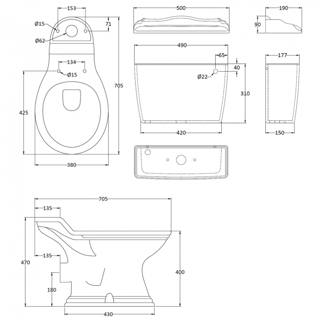 • Lever-operated single flush cistern (6 litres) offers traditional design