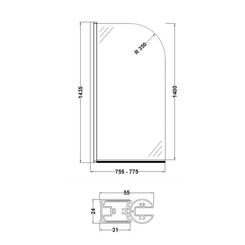 Bayswater Round Top Hinged Bath Screen 1435mm H x 790mm W - 6mm Glass | Product Image Bayswater Round Top Hinged Bath Screen 1435mm H x 790mm W - 6mm Glass | Product Image Bayswater Round Top Hinged Bath Screen 1435mm H x 790mm W - 6mm Glass