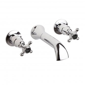 Bayswater Crosshead Dome 3 Hole Basin Mixer Tap Wall Mounted - Black/Chrome