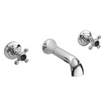 Bayswater Crosshead Hex 3-Hole Wall Mounted Bath Filler Tap Black/Chrome