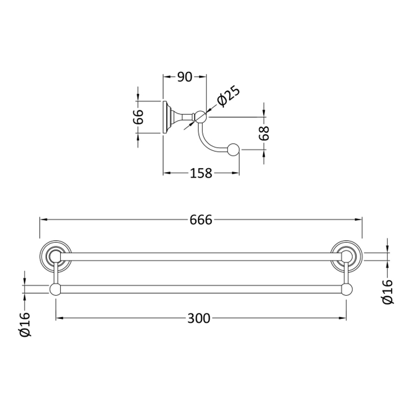 Bayswater Traditional Double Towel Bar Rail Chrome Bayswater Traditional Double Towel Bar Rail Chrome