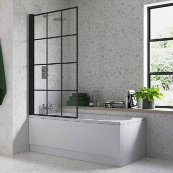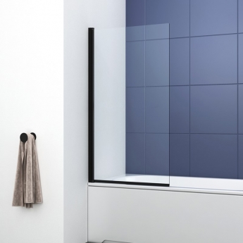 Nuie Pacific Matt Black Profile Square Hinged Bath Screen 1520mm H x 830mm W - 8mm Glass