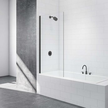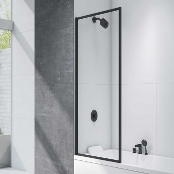 Nuie Pacific Square Matt Black Framed Bath Screen 1430mm H x 790mm W - 6mm Glass
