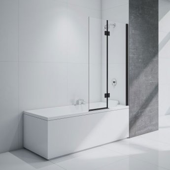 Merlyn Black Two Panel Square Hinged Bath Screen 1500mm H x 900mm W Left Handed - 8mm Glass