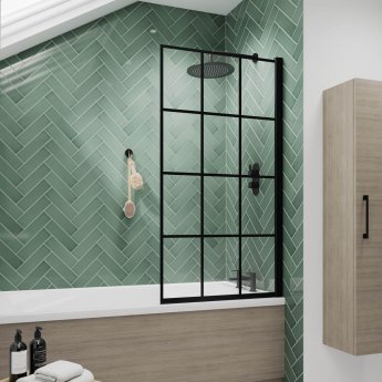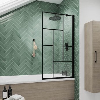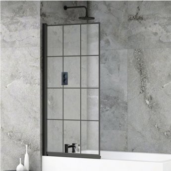 Nuie Abstract Matt Black Framed Square Bath Screen 1430mm H x 790mm W - 6mm Glass