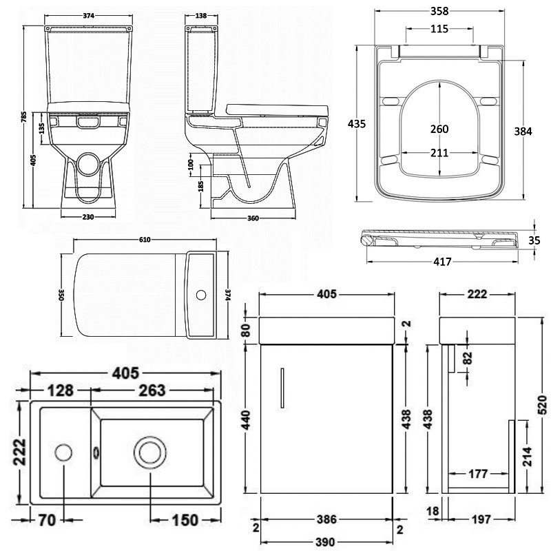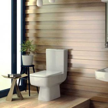- Toilet comes complete with push button cistern and soft close seat