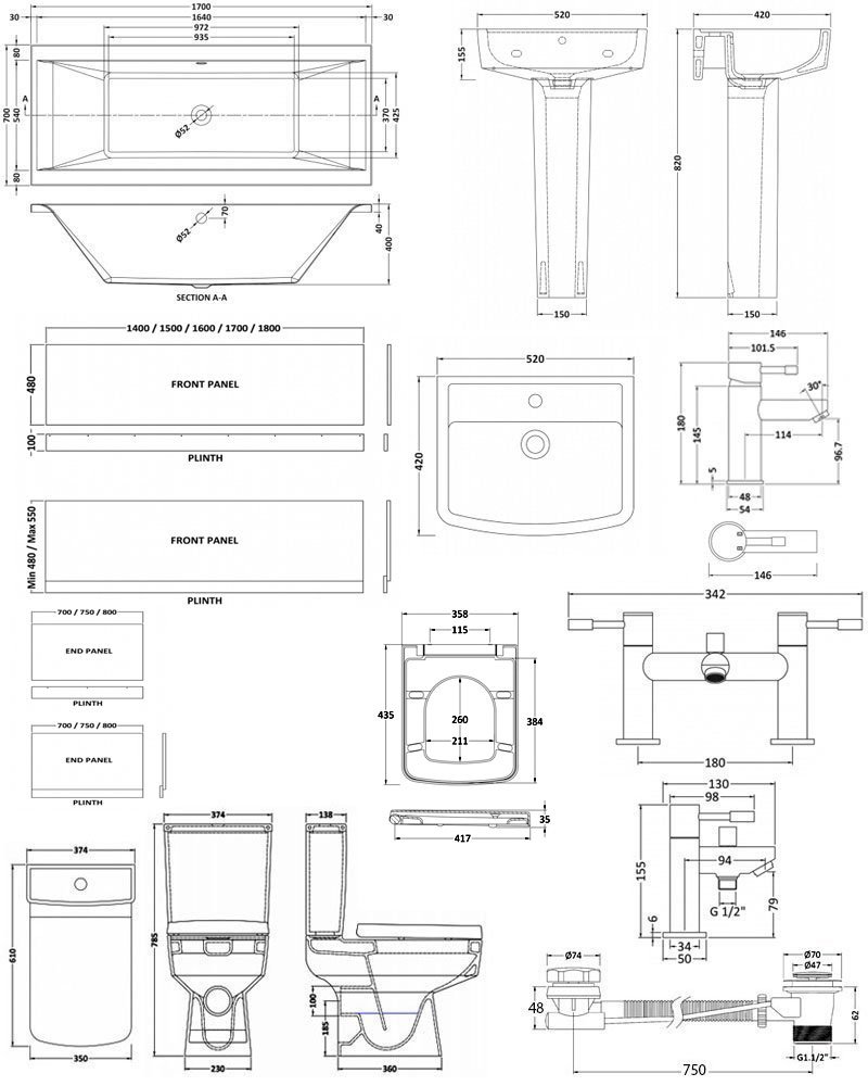 If you're really wanting to make a statement in the family bathroom, what could be better than a double ended bath. Perfect for relaxing in the tub after a long day at work, this style of bath has no awkward taps at the end, and looks stunning in any contemporary home. It's not just the bath which you get with this bathroom suite pack, the price also includes a full pedestal basin, close coupled toilet and even the taps and wastes you need for the sink and bath. It really does contain everything you need to install a brand new bathroom, or give an existing one a bit of a makeover.