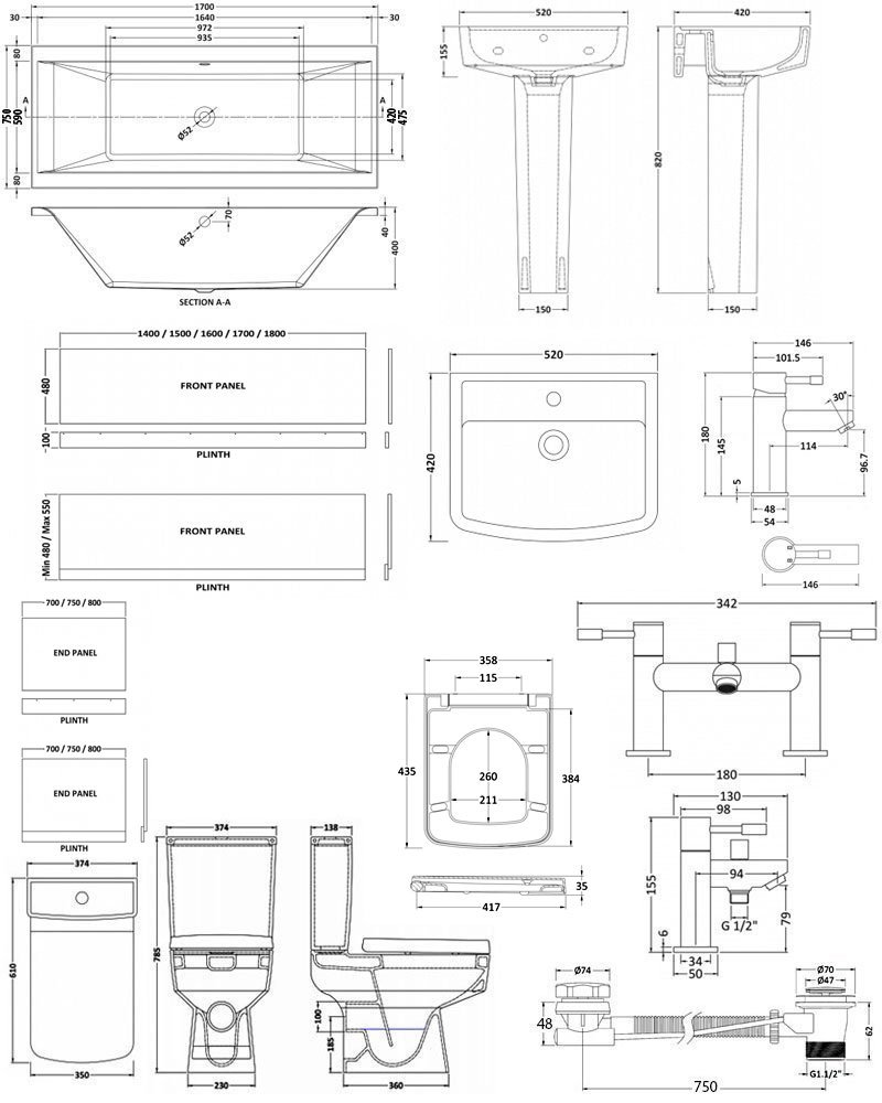 Is there anything more luxurious than a double ended bath. Soak in comfort after a long day at work without having to think about avoiding the taps, and having the taps in the middle also gives more flexibility over where on the wall you put your bath. This complete bathroom suite pack contains much more than just the bath though, it also provides you with a matching new full pedestal basin, close coupled toilet and all the wastes and taps you need to complete the job. This is the no hassle option for people who don't want to be wasting time looking for taps to match their new suite; we've done it all for you.