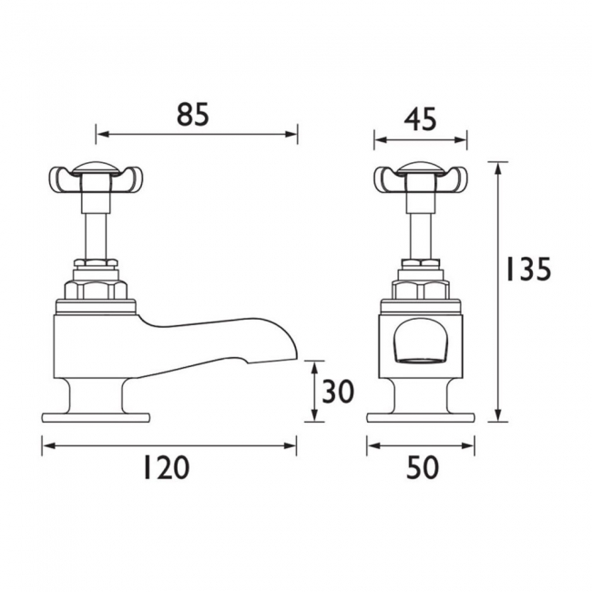 Bristan 1901 Bath Pillar Taps with Ceramic Disc Valves - Chrome | Product Image Bristan 1901 Bath Pillar Taps with Ceramic Disc Valves - Chrome