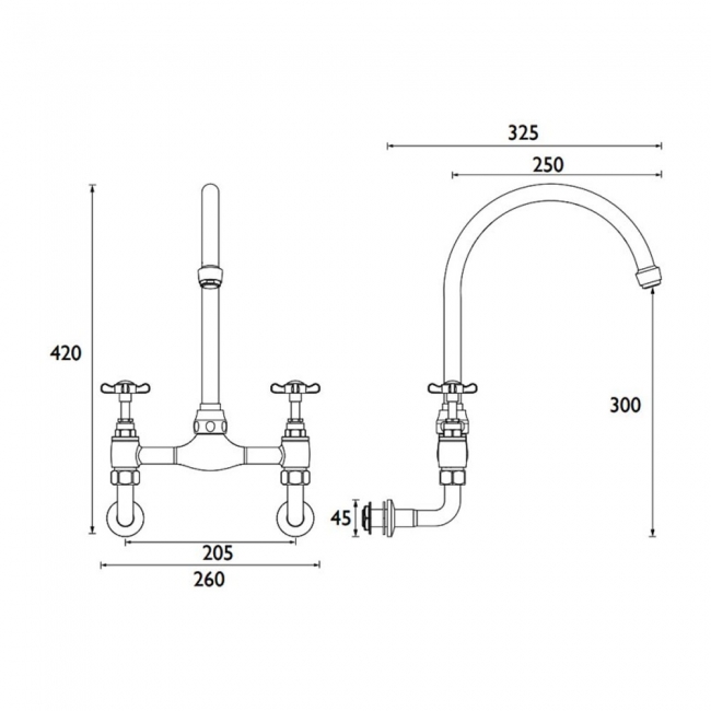 Bristan 1901 Bridge Kitchen Sink Mixer Tap Wall Mounted - Chrome | Product Image Bristan 1901 Bridge Kitchen Sink Mixer Tap Wall Mounted - Chrome