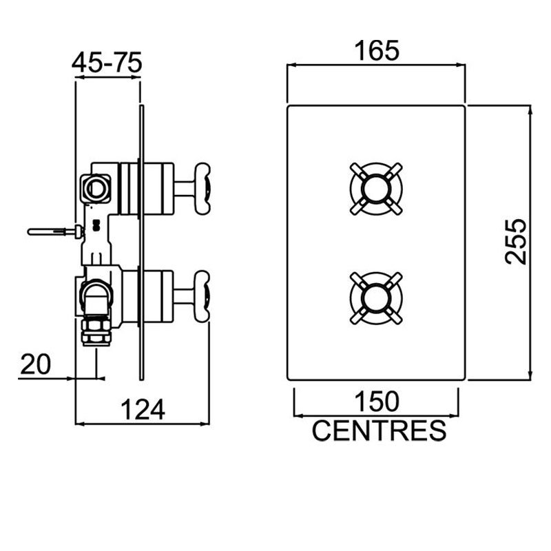 Nuie Binsey Thermostatic Concealed Shower Valve with Diverter Dual Handle - Chrome