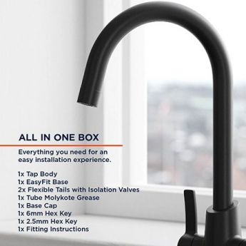 • Everything you need in the box including an Allen key, isolation valves, Top Fix Easyfit base, Easyfit tool and flexi tails