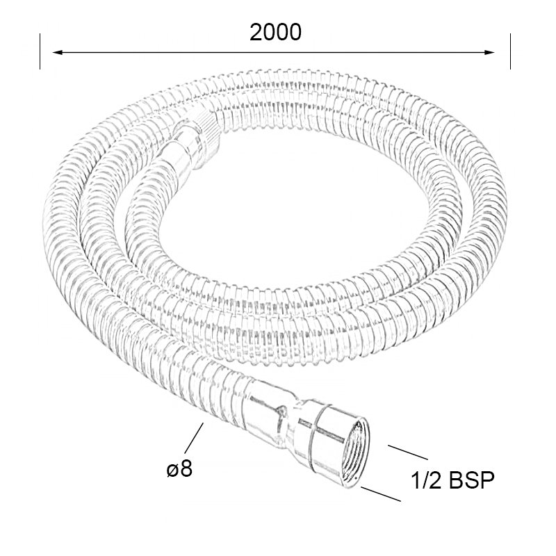 Bristan Cone to Nut Stainless Steel 2.0m Shower Hose 8mm Bore - Chrome Bristan Cone to Nut Stainless Steel 2.0m Shower Hose 8mm Bore - Chrome
