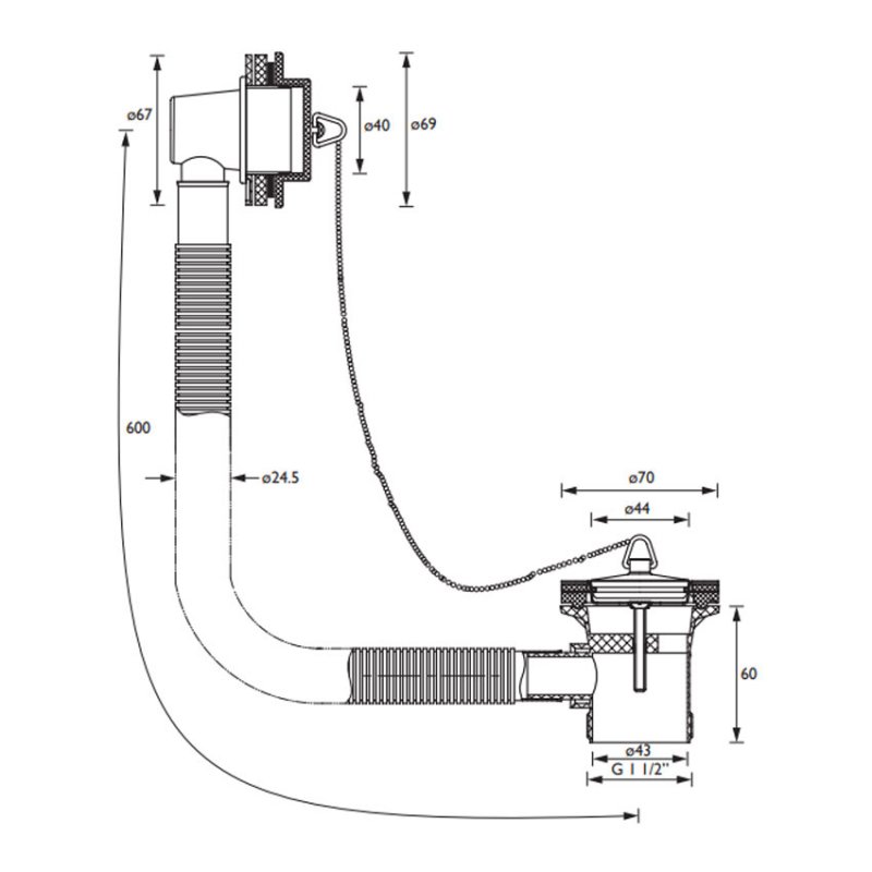 What's in the Box?1x Plastic Waste Body, Waste Flange, 1x Screw, 1x Overflow Tube, 1x Overflow Body, 1x Overflow Face, 1x 450mm Ball Link Chain, 1x Brass Plug, 3x Rubber Washers, 1x Foam Washer, 1x Plastic Washer