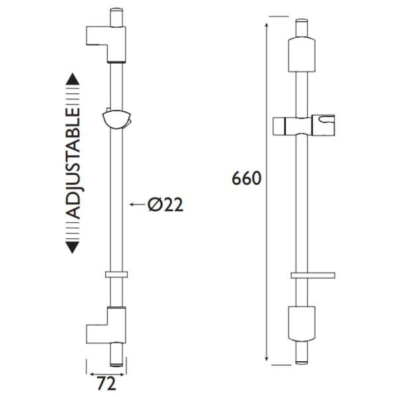 Complete your showering system with the stylish Bristan Evo Shower Riser Rail with Adjustable Fixing Bracket 660mm H - Chrome, The brackets can be positioned up or down the riser rail as required The brackets can also be adjusted to sit in the middle of the tiles or in the tile joints. comes with a 5 year guarantee from the manufacturer.